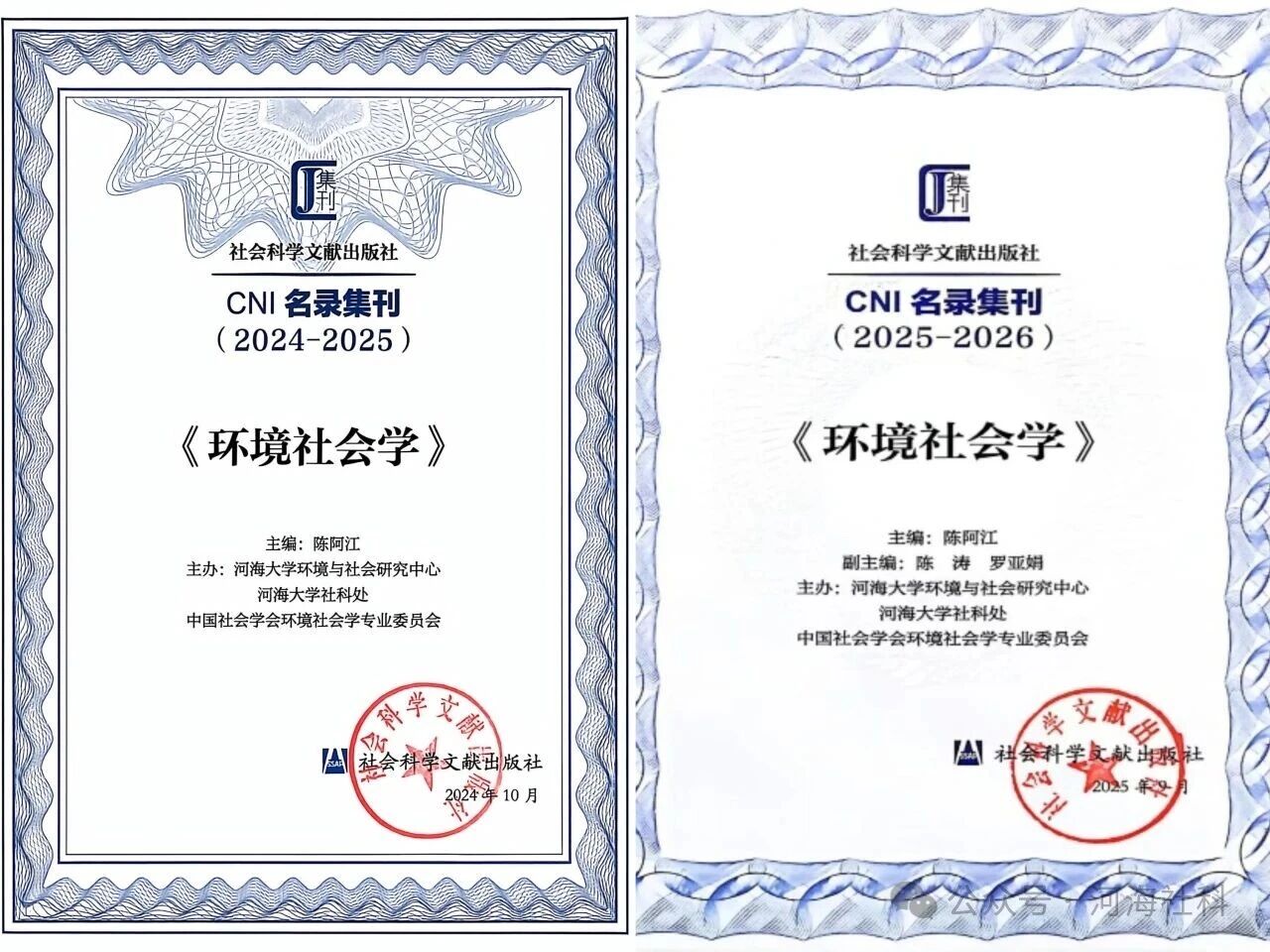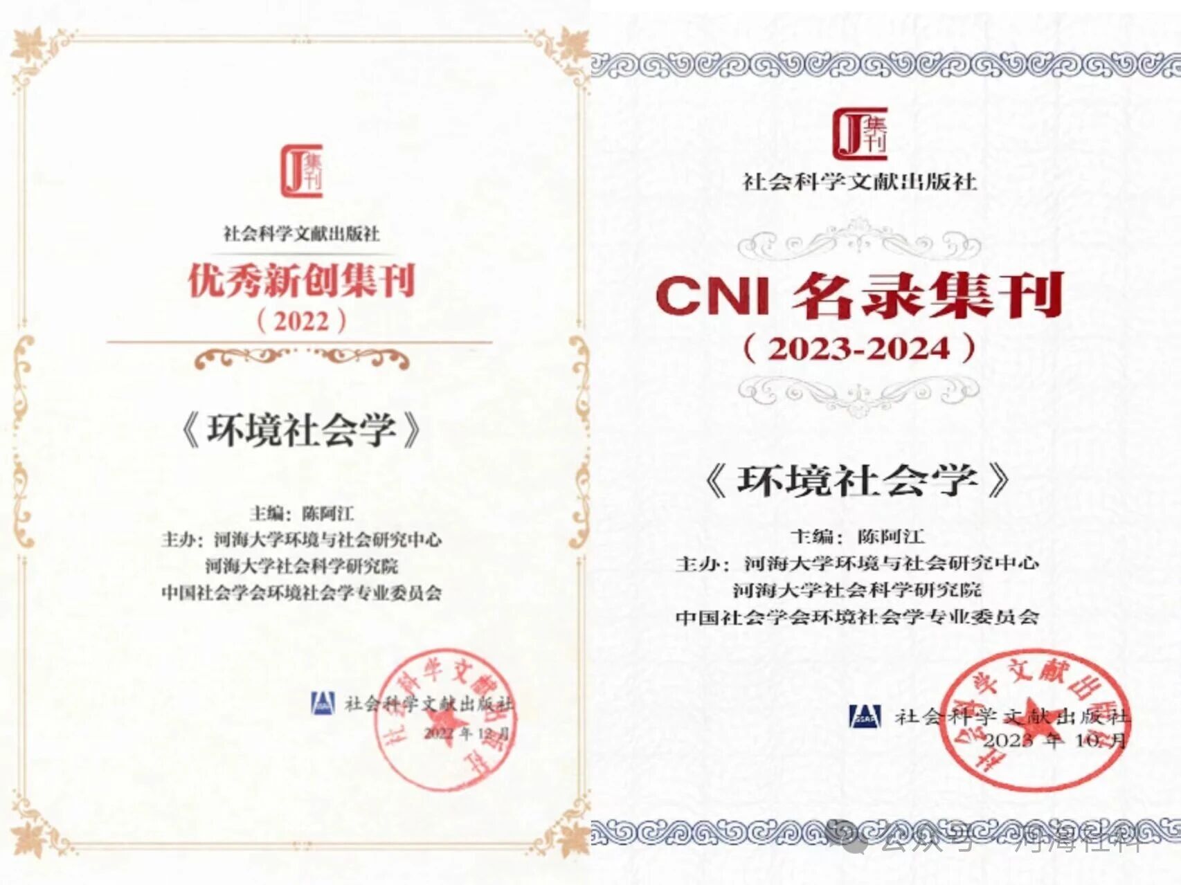 自2022年5月创刊以来,《环境社会学》集刊在短短三年多时间里,实现了从“初生萌芽”到“学界新锐”的跨越式发展,办刊品质与学术影响力持续提升。刊物荣获社会科学文献出版社“2022年度优秀新创集刊”称号,并于2023年至2025年连续三年入选该社“CNI名录集刊”;2024年,本刊正式获准成为中国社会学会环境社会学专业委员会会刊。