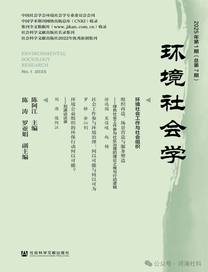 《环境社会学》是由河海大学环境与社会研究中心、中国社会学会环境社会学专业委员会联合主办,河海大学社科处提供支持的学术集刊。本刊每年定期出版两辑,目前已连续推出七辑,持续为环境社会学领域贡献高质量的学术成果。